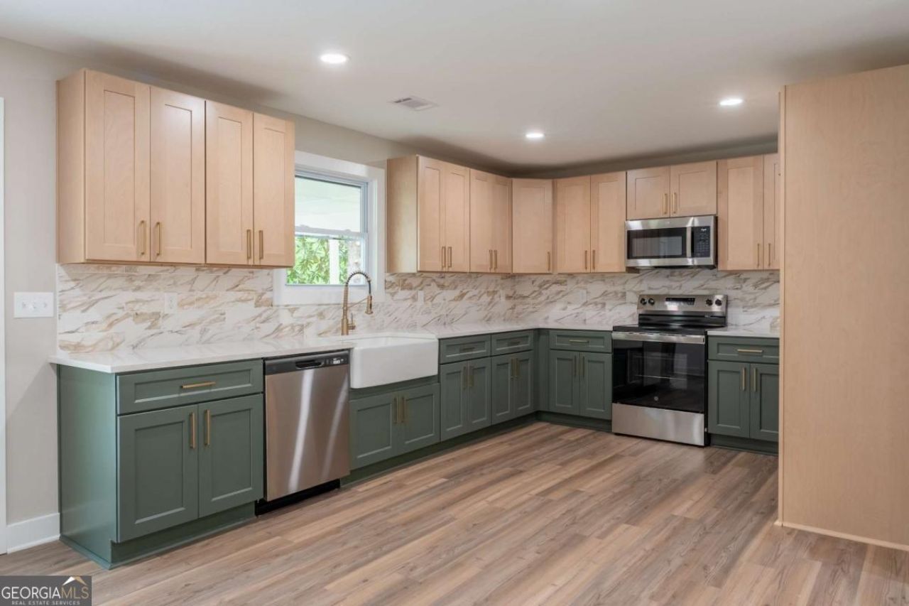Completely remodeled and move in ready, this charming ranch home sits on a private 1-acre lot with no HOA in Dallas, Georgia. Thoughtfully updated throughout, the home blends modern finishes with comfortable, single-level living. Inside, you'll find a bright, open layout featuring fresh paint, updated flooring, and a beautifully renovated kitchen with stylish cabinetry, new countertops, and modern fixtures. The spacious living areas are perfect for both relaxing and entertaining, while the updated bathrooms offer a clean, contemporary feel. Step outside to enjoy the peaceful setting, complete with a covered front porch and a beautifully updated back porch perfect for relaxing, entertaining, or taking in the quiet surroundings. The property also includes a barn, making it ideal for hobbies, storage, or small livestock. With its combination of privacy, upgrades, and usable land, this property offers the best of country-style living while still being conveniently located near shopping, dining, and schools.